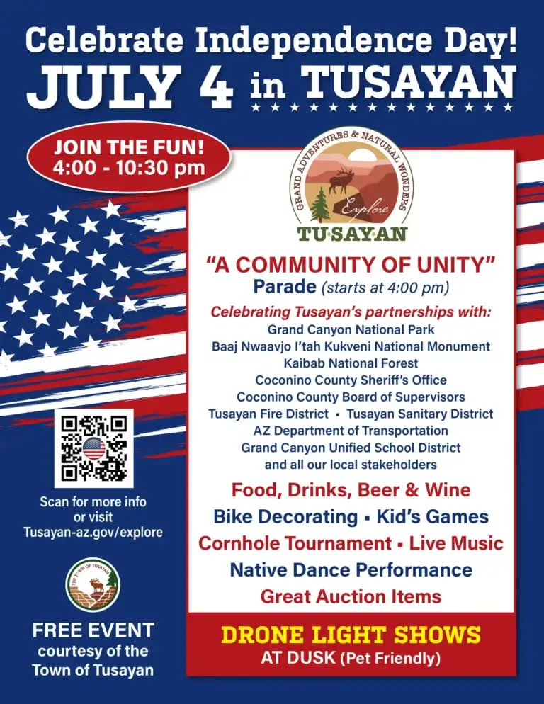 The town of Tusayan provides several family friendly events throughout the year. Exact Dates may change each year, please check back often for new events and updated information. Visit the Town of Tusayan Event Page for more informatoin.